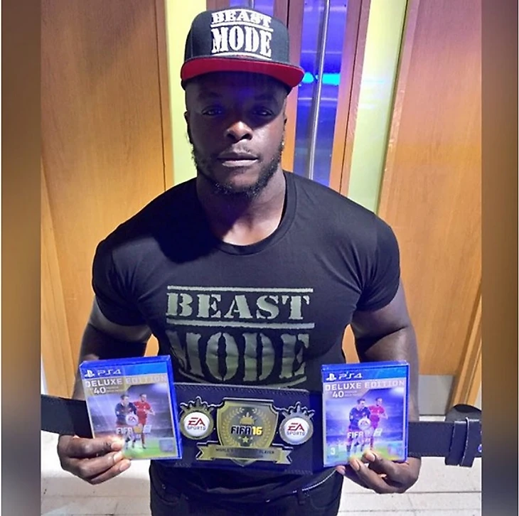 09:41 Нападающий «Уимблдона» Адебайо Акинфенва имеет свой чемпионский пояс от EA Sports. Beast Mode On.