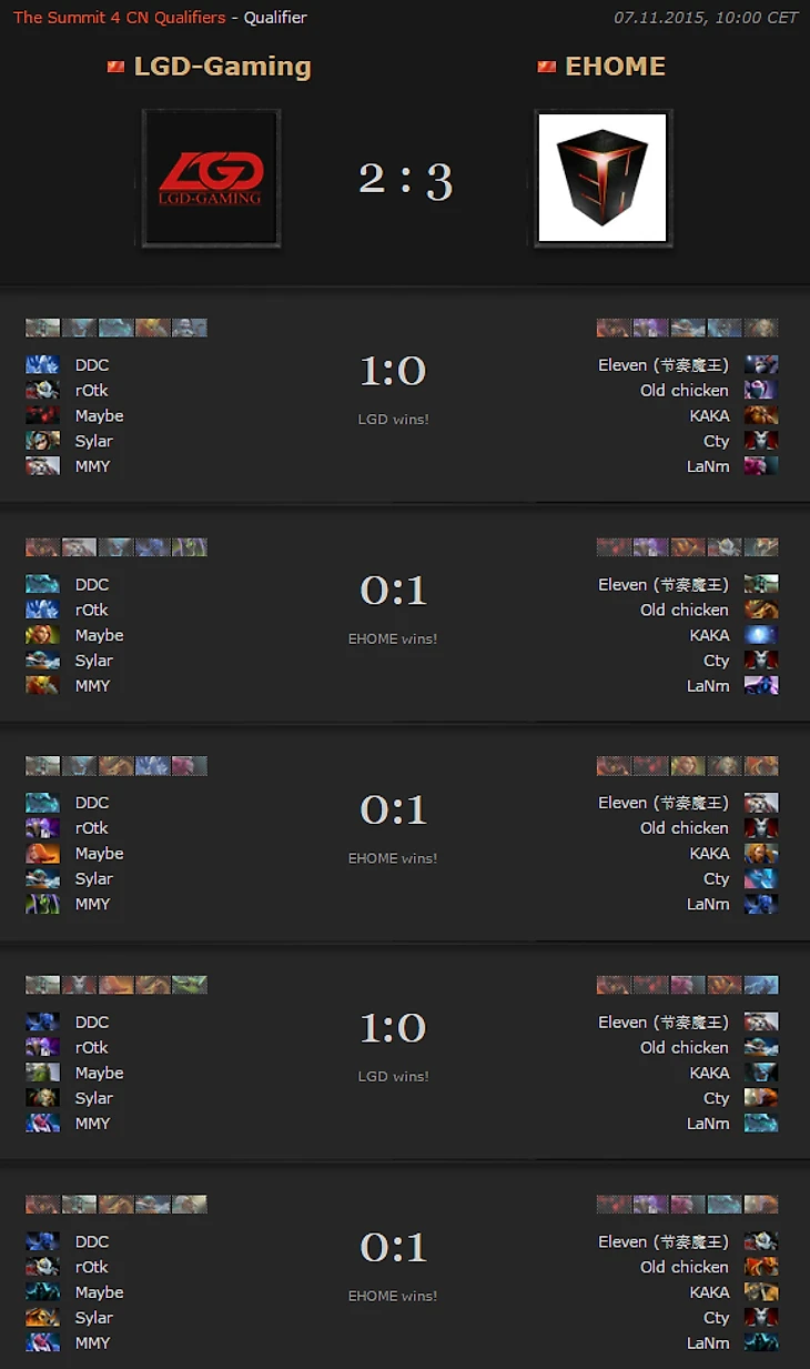 EHOME have secured their presence at The Summit after having a second shot at attending. ViCi Gaming had swept through EHOME 3:0 in the Grand Finals of the Chinese Qualifiers and they were knocked to the Lower Bracket finals to face LGD for the second spot.