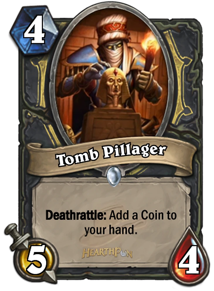 Спектр применения этой карты во истину велик — она может скопировать предсмертные хрипы у «Нерубского яйца» (и стать 3-4+4-4 за 3 маны) в ранней игре, или у «Сильваны» в поздней. Другое дело, пока не совсем понятно зачем разбойнику играть сильван и яйца, но тут будем разбираться, ибо карта очень хорошая и как раз может стать катализатором создания интересной и эффективной контрольной колоды разбойника.