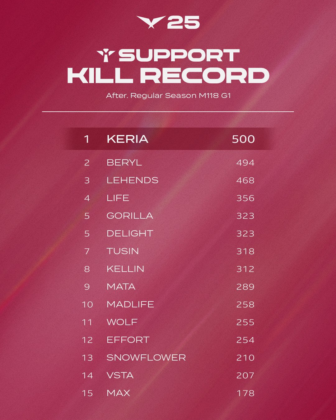 Keria первым из саппортов сделал 500 фрагов в LCK.