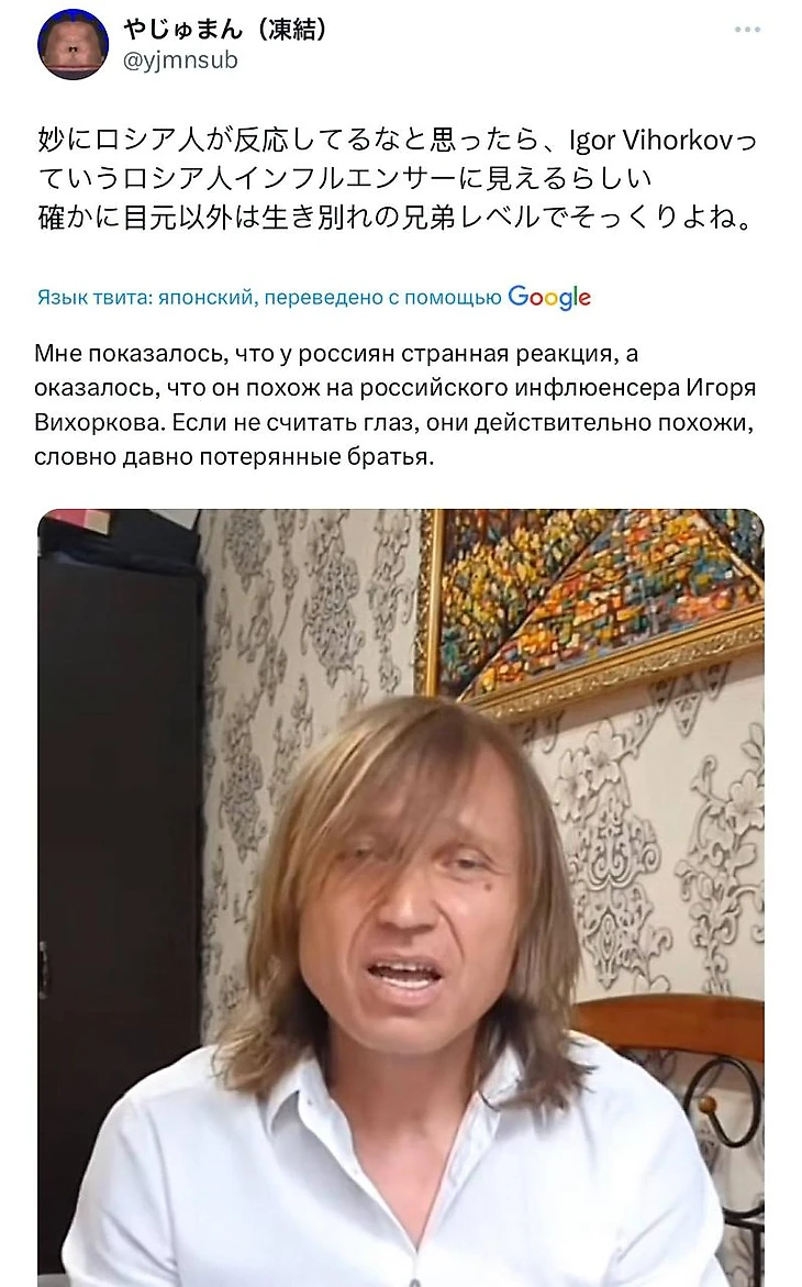 Все началось после того, как один из пользователей Х опубликовал ИИ-фото с порноактером KBTIT. На пост наткнулись русскоязычные ребята, нашли сходство с тиктокером и сообщили о брате-близнеце в комментариях. Японцы фишку оценили и теперь активно знакомятся с творчеством блогера. Например, пользователи из России уже перевели им песню про творог. Ждем Вихорькова в аниме.