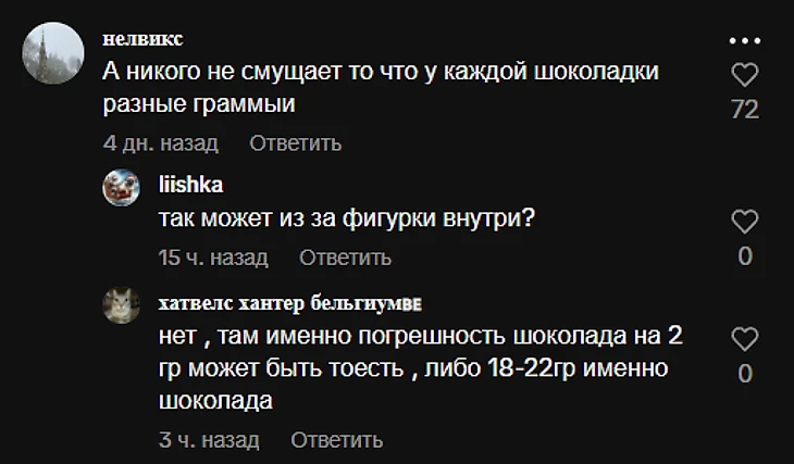 Другой способ можно назвать классическим, так как его используют уже давно: люди взвешивают Kinder Joy. По версии Тиктока, яйцо с Уиллом весит 31 грамм.