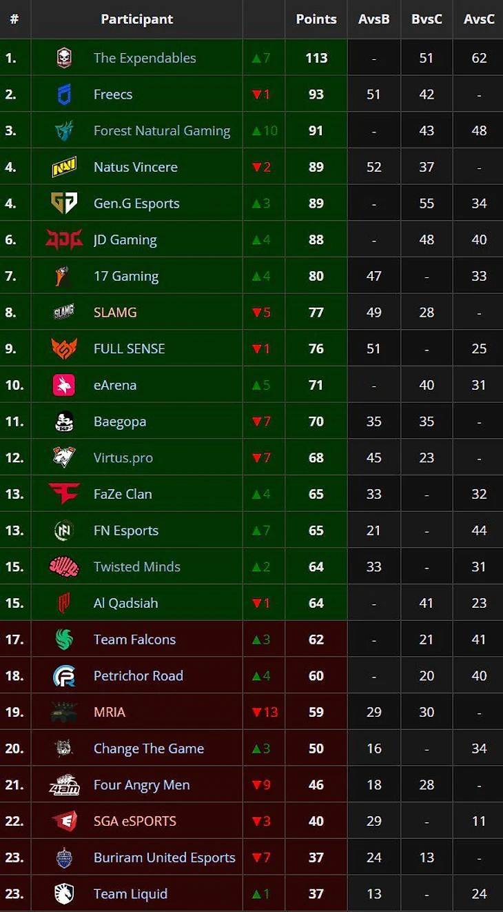 NAVI заняли 4-е место по итогам групповой стадии. Команда набрала 89 очков, сделав 58 фрагов за 12 карт. Российско-украинский состав Slamg занял 8-е место (77 очков), Virtus.pro – 12-е (68 очков), Twisted Minds – 15-е (64 очка).