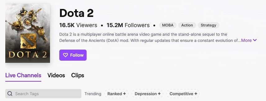Помимо тега «Depression», стримеры также часто используют теги «Ranked» (для рейтингового матчмейкинга) и «Сompetitive» (для соревновательных игр).