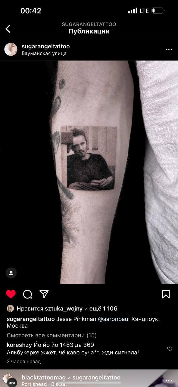 Алексей «» Деревяшкин похвастался, что актер , сыгравший Джесси Пинкмана в сериале «», поделился его татуировкой.
