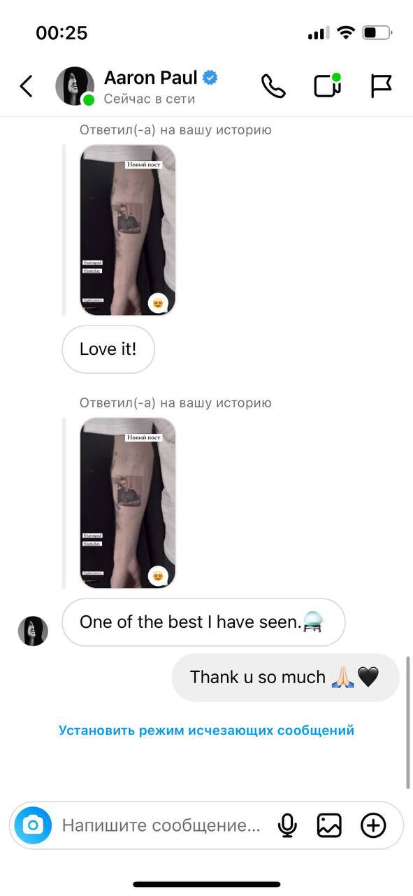 Сам Аарон Пол похвалил работу мастера в своем инстаграме: