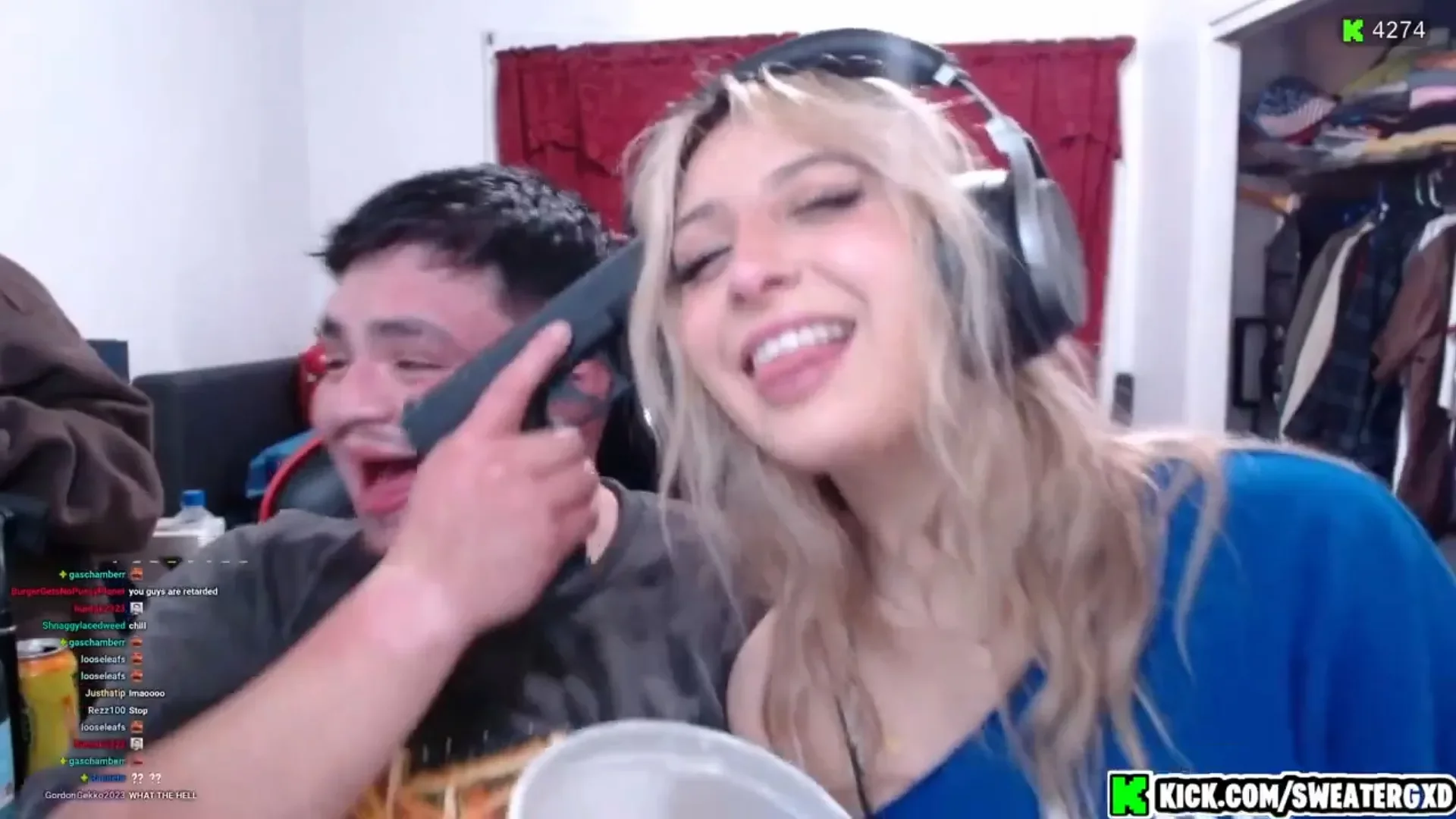 Sweatergxd в шутку достал пистолет и приставил к голове девушке, а затем начал засовывать его собеседнице в рот.