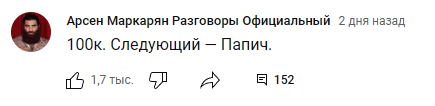30 июня блогер Арсен Маркарян написал, что запишет ролик с Папичем в честь 100 тысяч подписчиков на YouTube.