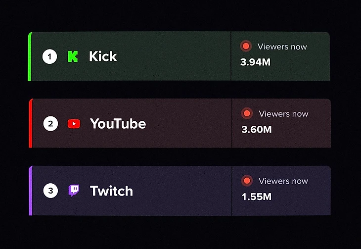 Kick опередила YouTube и Twitch по онлайну.