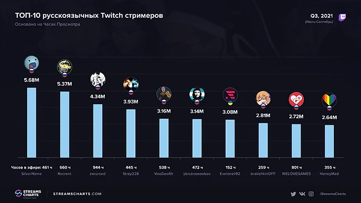 Владислав Синотов, a.k.a. Silvername, Сильвер, Влад, Стас, СТЭЭЭЭЭС, Пукич, П.У.К.И.Ч. (Пусковая Установка, Которая Истребит Человечество), Жироменталь, Ультраслабый – главный амбассадор Hearthstone на русскоязычном Twitch. Практически в любое время его трансляции входят в топ-10 по просмотрам среди русскоязычных каналов. А с июля по сентябрь 2021 года он вообще был самым популярным русскоязычным стримером.