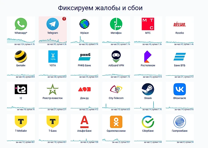 Среди сервисов и приложений утром, 13 августа, массовые сбои наблюдаются в работе телеграма.