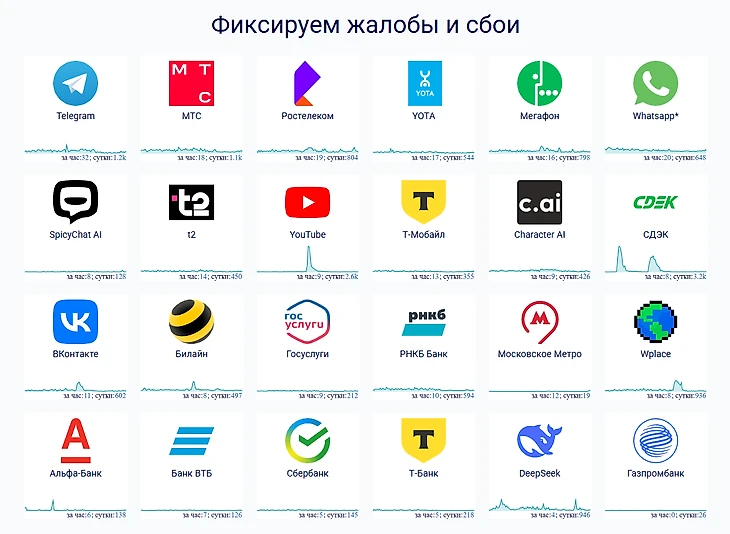 Россияне дальше сталкиваются с ошибкой интернета или сбоем некоторых интернет-сервисов. По состоянию на утро, 19 августа, больше всего жалоб поступает от абонентов МТС, Yota и «Мегафона». Также проблемы испытывают абоненты провайдер «Ростелеком».