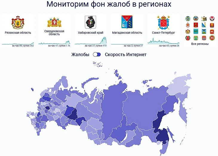 По областям на проблемы в основном жалуются жители Санкт-Петербурга, Рязанской области и Свердловской области. Данные взяты с сайта «Сбой.рф». Downdetector.su также подтверждает увеличившееся количество жалоб на сбои и проблемы в Москве и Хабаровском крае.