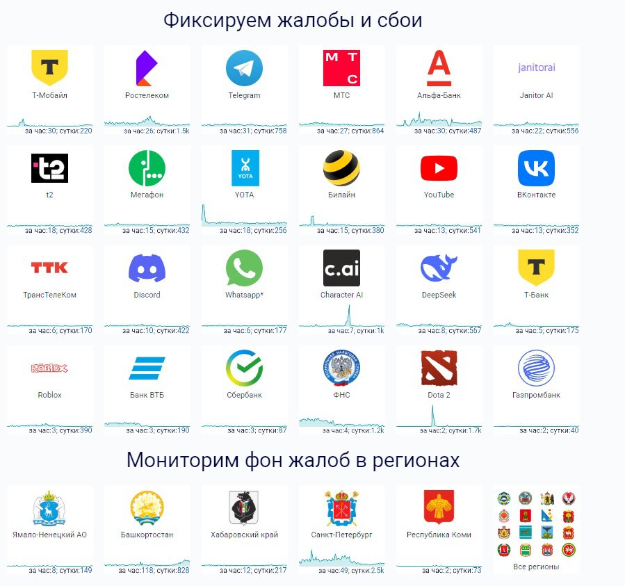 Москва (72 жалобы за последний час);