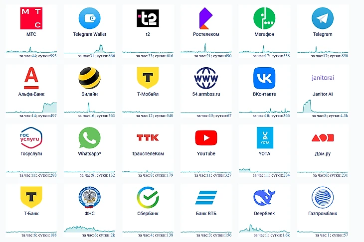 Среди сервисов и приложений утром, 23 сентября, массовые сбои наблюдаются в работе Telegram и Janitor AI.