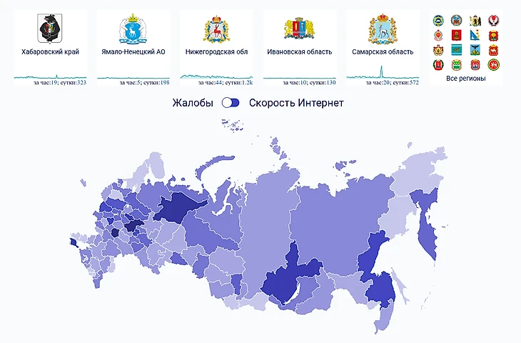 По областям на проблемы в основном жалуются жители Санкт-Петербурга, Самарской области и Хабаровского края. Данные взяты с сайта «Сбой.рф». Downdetector.su также подтверждает увеличившееся количество жалоб на сбои и проблемы в Москве.