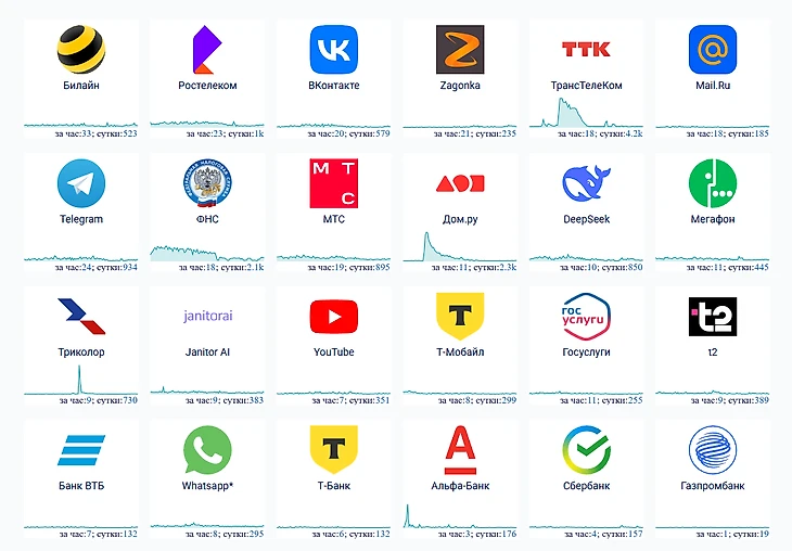 Россияне дальше сталкиваются с ошибкой интернета или сбоем некоторых интернет-сервисов. По состоянию на утро, 25 сентября, больше всего жалоб поступает от абонентов «Билайна», МТС и «Мегафона». Также проблемы испытывают абоненты провайдера «Ростелеком».