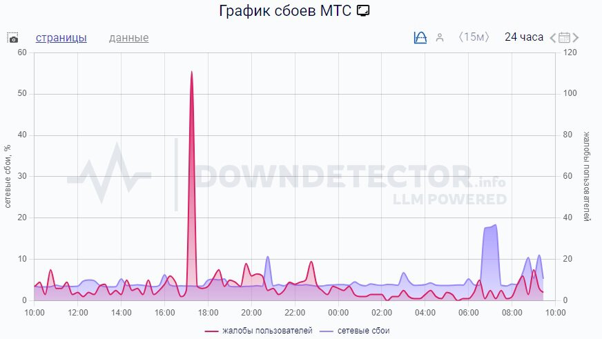 По данным сайтов «Сбой.рф» и Downdetector.su, за последний час поступают сообщения о проблемах в работе МТС из регионов: