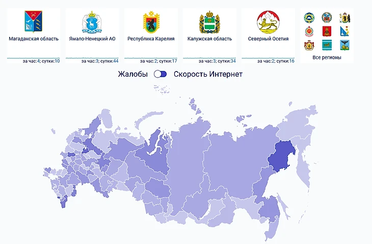 По областям на проблемы в основном жалуются жители Москвы, Новосибирской области и Краснодарского края. Данные взяты с сайта «Сбой.рф». Downdetector.su также подтверждает увеличившееся количество жалоб на сбои и проблемы в Магаданской области.