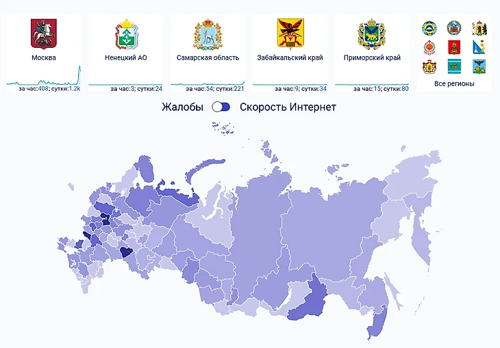 По областям на проблемы в основном жалуются жители Москвы, Самарской области и Санкт-Петербурга. Данные взяты с сайта «Сбой.рф». Downdetector.su также подтверждает увеличившееся количество жалоб на сбои и проблемы в Приморском крае.