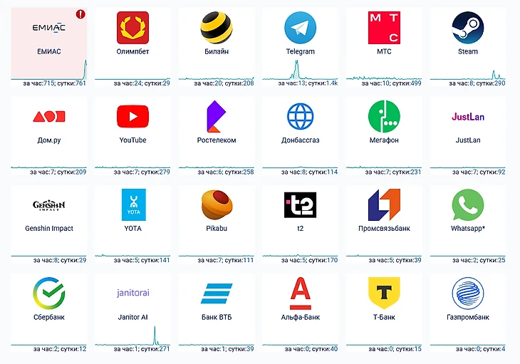 Россияне дальше сталкиваются с ошибкой интернета или сбоем некоторых интернет-сервисов. По состоянию на утро, 7 октября, больше всего жалоб поступает от абонентов «Билайна» и МТС. Также проблемы испытывают абоненты провайдера «Дом.ру».