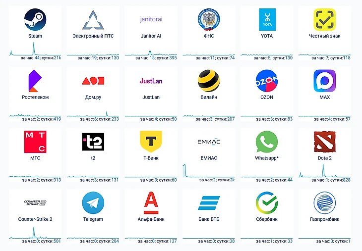Россияне дальше сталкиваются с ошибкой интернета или сбоем некоторых интернет-сервисов. По состоянию на утро, 8 октября, больше всего жалоб поступает от абонентов Yota и «Билайна». Также проблемы испытывают абоненты провайдера «Ростелеком».