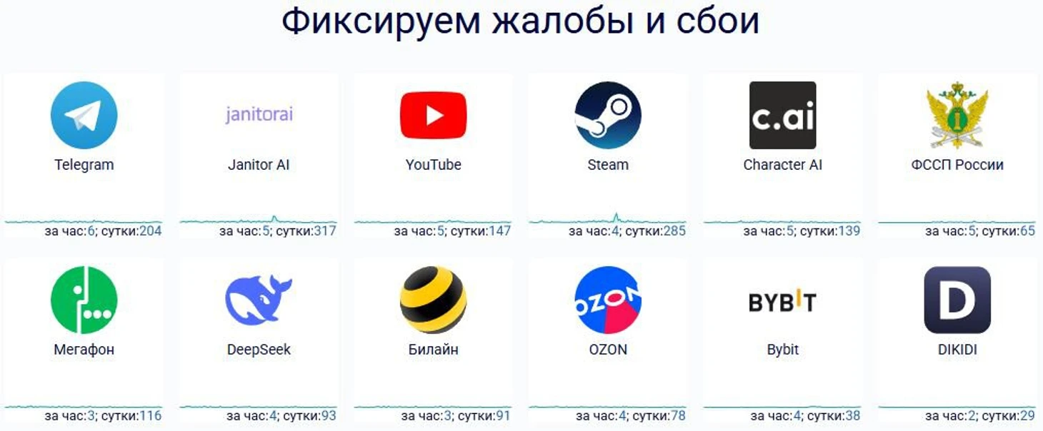 Среди сервисов и приложений утром, 11 октября, массовые сбои наблюдаются в работе Telegram и Janitor AI.