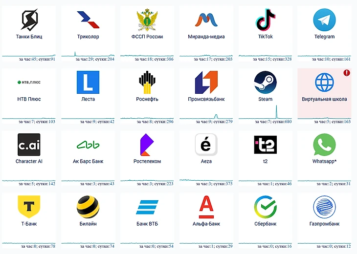 Среди сервисов и приложений утром, 15 октября, массовые сбои наблюдаются в работе оператора «Триколор» и и ФССП России.