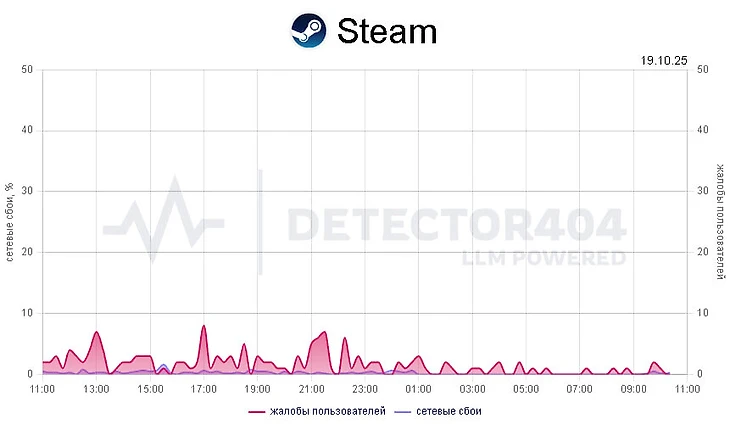 По данным сайтов «Сбой.рф» и Downdetector.su, за последний час поступают сообщения о проблемах в работе Steam из регионов: