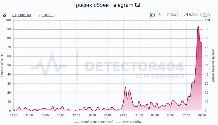 За час Downdetector зафиксировал более 300 жалоб. По регионам на Telegram больше всего жалуются: