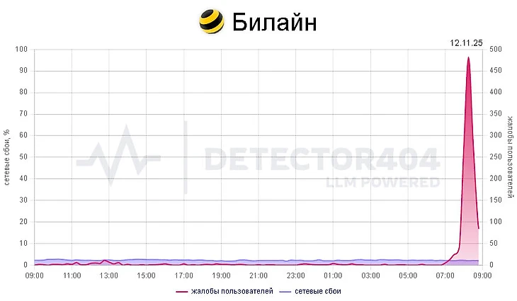 Сбой интернета Билайн сегодня, 12 ноября