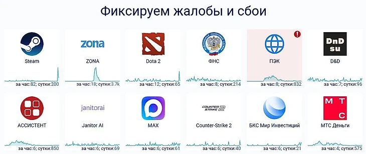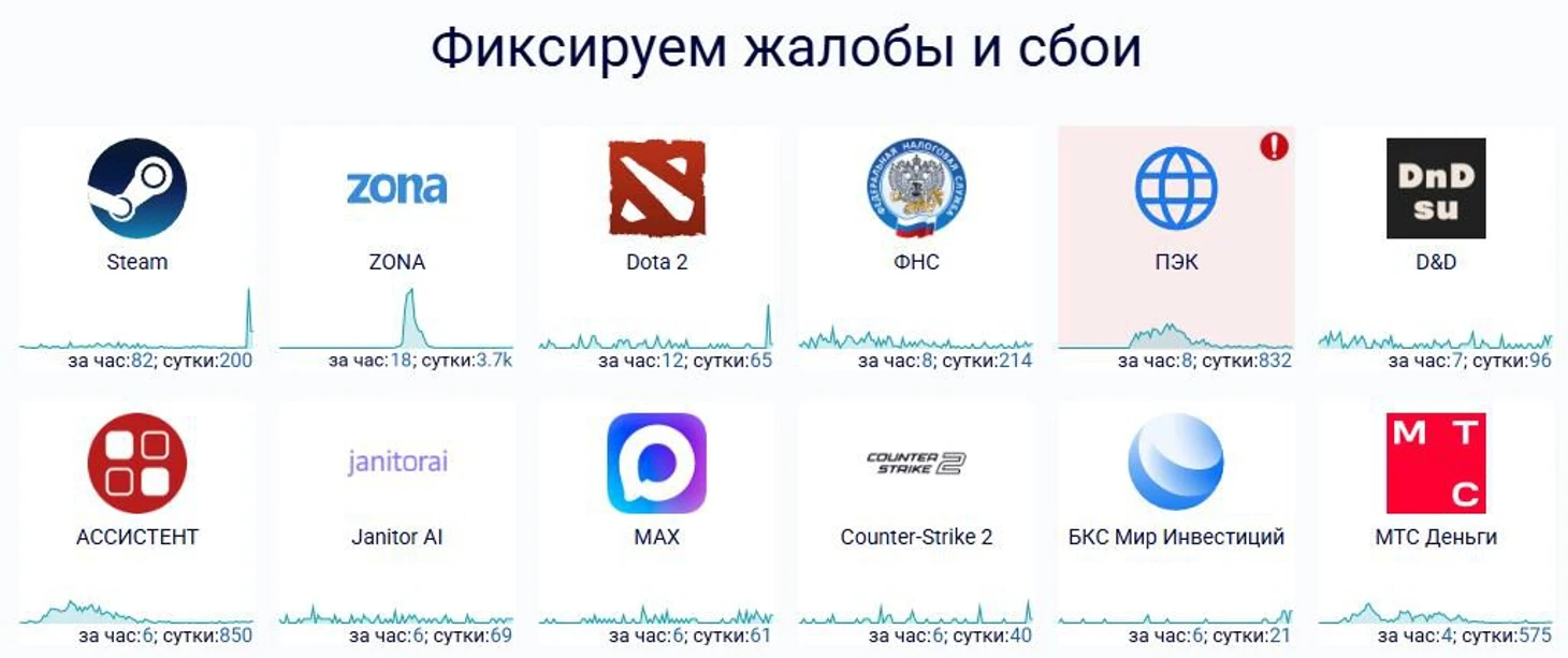 Среди сервисов и приложений утром, 20 ноября, массовые сбои наблюдаются в работе Steam и Zona.
