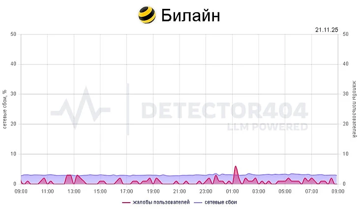 Сбой интернета Билайн сегодня, 21 ноября