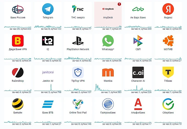 Среди сервисов и приложений утром, 24 ноября, массовые сбои наблюдаются в работе «Банк Россия» и Telegram.