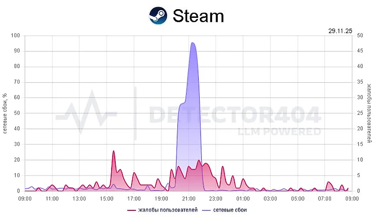 По данным сайтов «Сбой.рф» и Downdetector.su, на проблемы с доступом к Steam жалуются жители Амурской области, Пензенской области и Санкт-Петербурга.