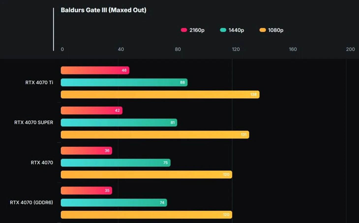 Портал WCCF Tech получил модель GeForce RTX 4070 с памятью GDDR6 и протестировал ее на играх. Тесты показали, что Nvidia не обманула – версия с медленной памятью выступила достойно. На опубликованных графиках видно, что в большинстве игр разница составила 3-4%.