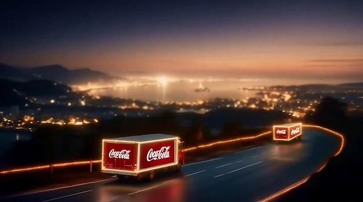 Сюжет основного ролика «Праздники приближаются» не изменился: знакомые всем грузовики развозят напиток в преддверии праздника. Однако сгенерированное видео неестественно торопится с событиями клиповым монтажом. Издание Forbes считает, что эта спешка произошла среди прочего из-за эффекта «зловещей долины». Изображения людей, созданные ИИ, не задерживаются в кадре, а Санта-Клаус вовсе не появляется – видна только его рука.