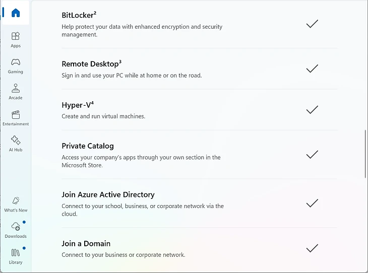 Microsoft продвигает Pro-версию в первую очередь для компаний, поэтому логично, что большинство ограничений связано с функциями, ориентированными на бизнес.