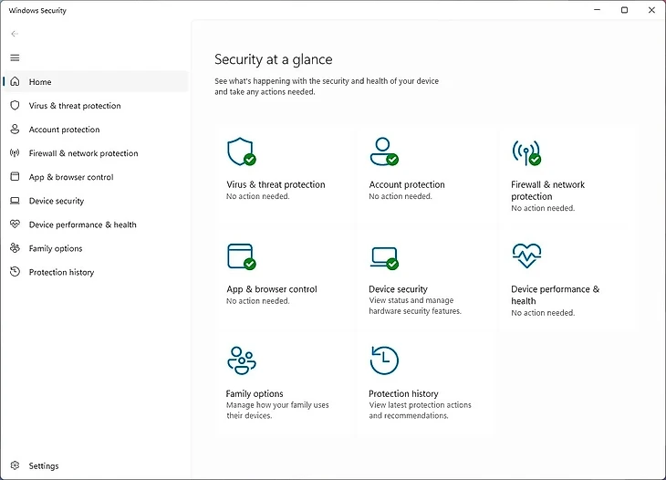 В системах установлен антивирус и брандмауэр Microsoft Defender. Он весьма хорошо справляется со своей задачей и обеспечивает защиту устройства от вирусов и злоумышленников. Бонусом идет Windows Hello, включающий в себя биометрическую аутентификацию через распознавание лиц, отпечатки пальцев или PIN-код.