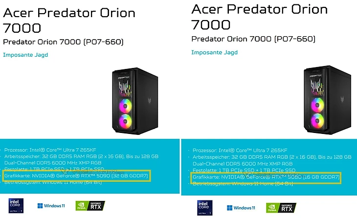 Компания Acer «случайно» подтвердила слухи о новой линейке GeForce RTX 50, засветив характеристики игровых ПК Predator Orion 7000 для выставки CES 2025. Они также подтвердили ранее слитую информацию от Zotac.