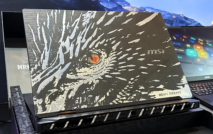 Компания MSI не стесняется экстремальных дизайнов ноутбуков. Посмотрите на новый Titan 18 HX Dragon Edition Norse Myth. Этот гигантский, толстый 18-дюймовый зверь с текстурированной крышкой дисплея напоминает скайримского Алдуина от мира ноутбуков.