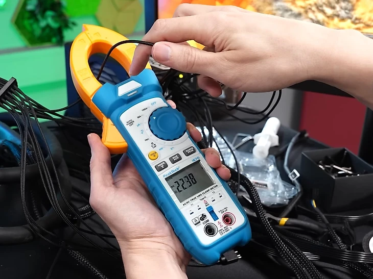 С помощью токовых клещей эксперт выяснил, что один из 12-вольтовых проводов пропускал ток силой более 22 А, что эквивалентно 264 Вт мощности. Принятые стандарты разъемов питания 12VHPWR и 12V-2x6 допускают передачу лишь до 9,5 А через один контакт. Пять оставшихся проводов передавали ток с силой около 2 A (24 Вт), 5 A (60 Вт), 11 A (132 Вт), 8 A (96 Вт) и 3 A (36 Вт).