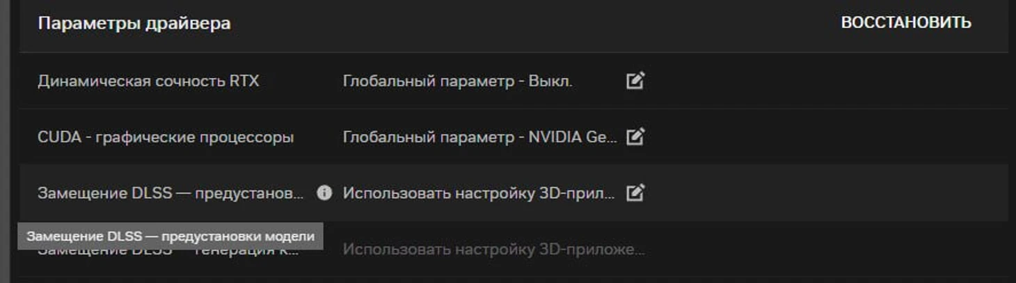 Другой простой метод обновления DLSS проворачивается в «Приложении Nvidia». После запуска программы выберите игру и найдите параметр «Замещение DLSS».