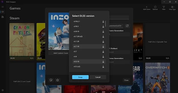 Скачайте DLSS Swapper с Github и установите приложение. В главном окне программы выберите InZOI, а затем желаемую версию DLSS. Ставить версию ниже установленной разработчиками, конечно же, не стоит.