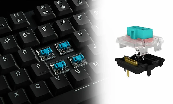 Тоже бывают разными: линейные Kailh Speed Silver и Cherry MX Speed, тактильные Gateron KS-27 и даже кликающие Tesoro Slim Blue, хотя последние два типа более редкие и дорогие.