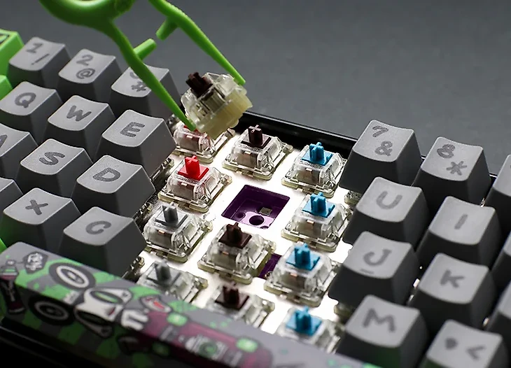Некоторые клавиатуры позволяют менять свитчи без пайки, прямо как детальки Lego – достал старый, воткнул новый и пользуешься.