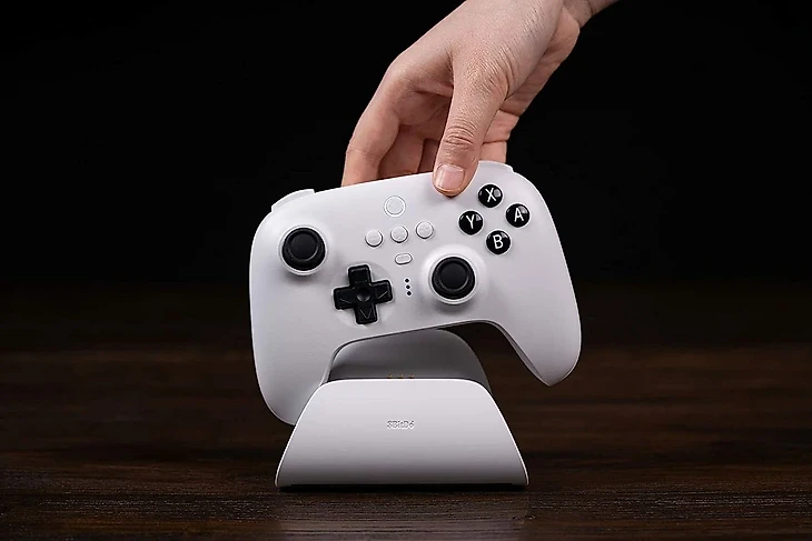 8BitDo Ultimate 2 – среднебюджетный геймпад с претензией на инновации. Стики с туннельными магниторезистивными датчиками (по сути – те же датчики Холла) и триггеры на датчиках Холла обеспечивают точность, а RGB-подсветка добавляет стиля. Подключается через Bluetooth, радиоканал или провод, а в комплекте идет зарядная док-станция. Четыре дополнительные кнопки и гироскоп расширяют возможности управления.
