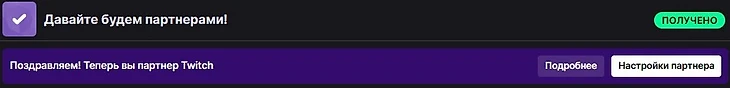 Заявка будет рассмотрена командой Twitch в течение нескольких недель. В случае одобрения вы получите доступ ко всем функциям партнерства.