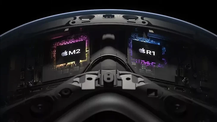 Процессоры – чип M2 (как в MacBook и iPad) отвечал за работу приложений, а R1 – за обработку данных с 12 камер и 5 сенсоров в реальном времени.