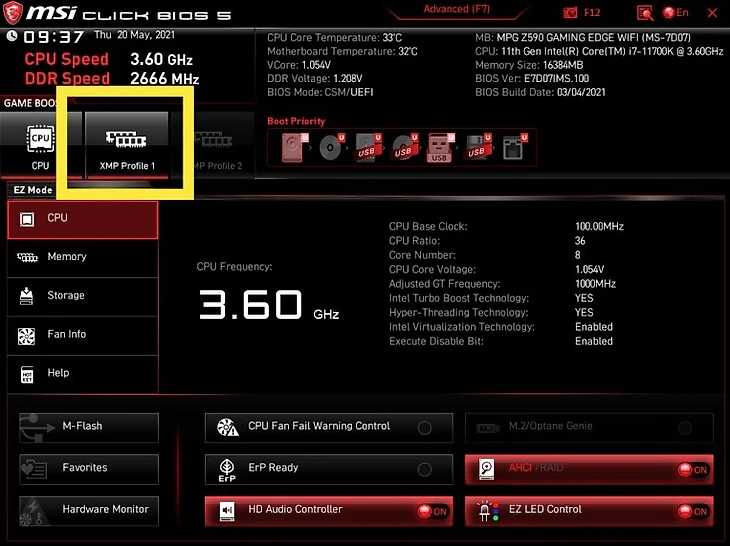 Рядом с названием профиля (или при его выборе) в BIOS отображается целевая частота памяти (например, DDR4-3600, DDR5-6000) и иногда основные тайминги.